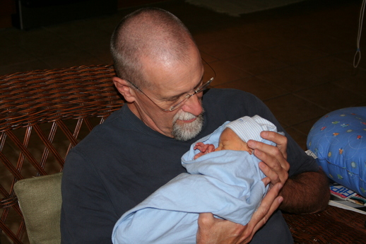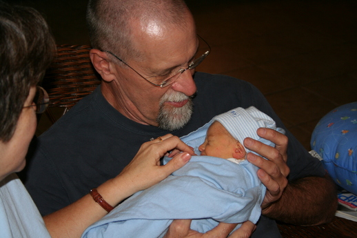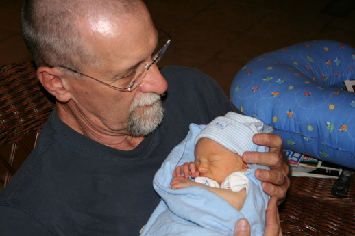 Gabe gets to wear his big pants for a visit from Grandma Jeanne and Grandpa Roy. I could have easily fit another Gabe in those pants- he has got some growing to do before he wears them out. Grandpa Roy requested some pics for world wide distribution: